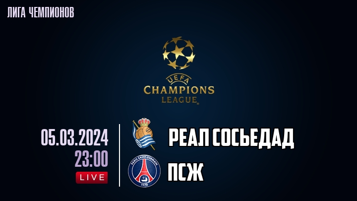 5 марта 2024 года, состоялась онлайн трансляция футбольного матча между футбольным клубом Реал Сосьедад и футбольным клубом ПСЖ, проходящего в рамках Лиги Чемпионов.