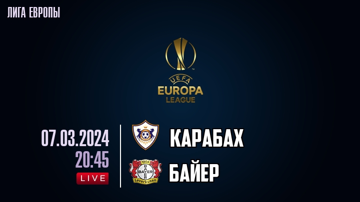7 марта 2024 года, состоялась онлайн трансляция футбольного матча между футбольным клубом Карабах и футбольным клубом Байер, проходящего в рамках Лиги Европы.