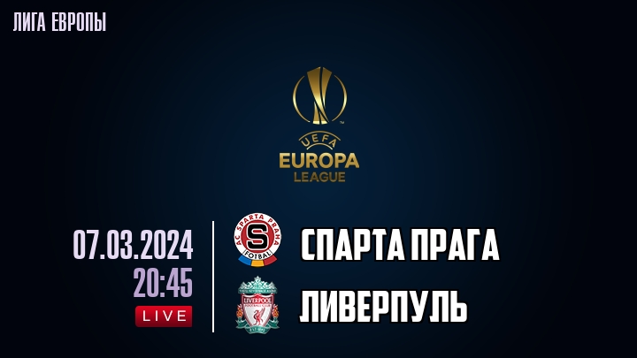 7 марта 2024 года, состоялась онлайн трансляция футбольного матча между футбольным клубом Спарта Прага и футбольным клубом Ливерпуль, проходящего в рамках Лиги Европы.