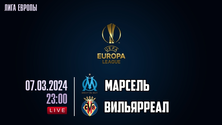 7 марта 2024 года, состоялась онлайн трансляция футбольного матча между футбольным клубом Марсель и футбольным клубом Вильярреал, проходящего в рамках Лиги Европы.
