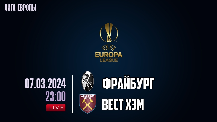 7 марта 2024 года, состоялась онлайн трансляция футбольного матча между футбольным клубом Фрайбург и футбольным клубом Вест Хэм, проходящего в рамках Лиги Европы.