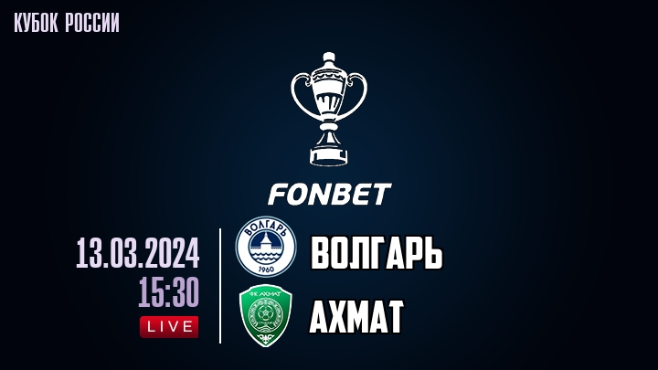 13 марта 2024 года, состоялась онлайн трансляция футбольного матча между футбольным клубом Волгарь и футбольным клубом Ахмат, проходящего в рамках Кубка России.