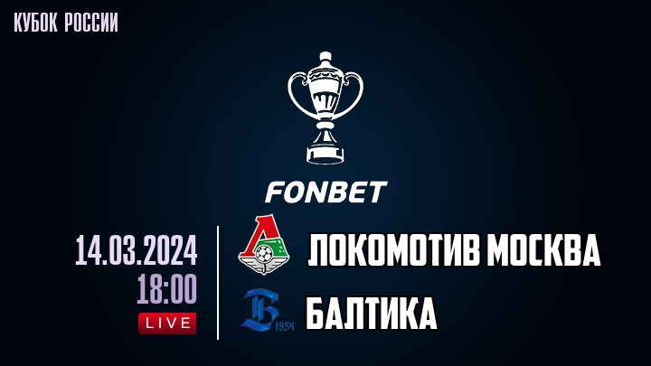 14 марта 2024 года, состоялась онлайн трансляция футбольного матча между футбольным клубом Локомотив Москва и футбольным клубом Балтика, проходящего в рамках Кубка России.