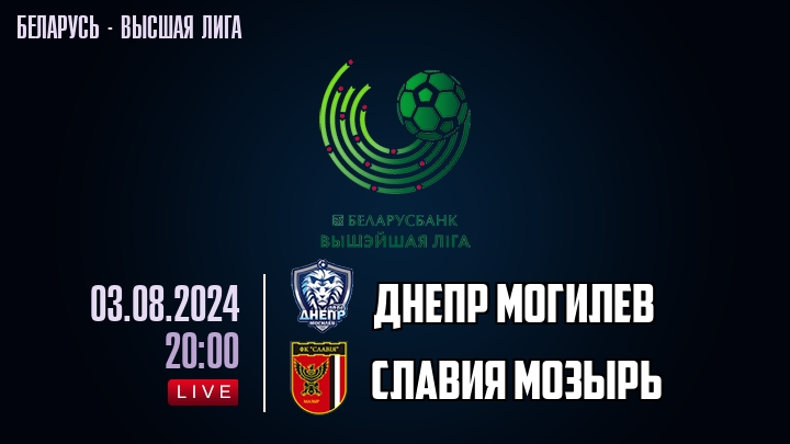 3 августа 2024 года, состоялась онлайн трансляция футбольного матча между футбольным клубом Днепр Могилев и футбольным клубом Славия Мозырь, проходящего в рамках Высшей лиги Беларуси.