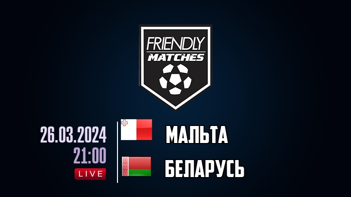 26 марта 2024 года, мы предлагаем посмотреть онлайн трансляцию футбольного матча между сборной Мальты и сборной Беларуси, проходящего в рамках .
