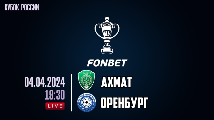 4 апреля 2024 года, состоялась онлайн трансляция футбольного матча между футбольным клубом Ахмат и футбольным клубом Оренбург, проходящего в рамках Кубка России.