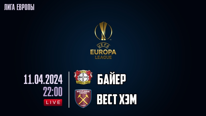 11 апреля 2024 года, состоялась онлайн трансляция футбольного матча между футбольным клубом Байер и футбольным клубом Вест Хэм, проходящего в рамках Лиги Европы.