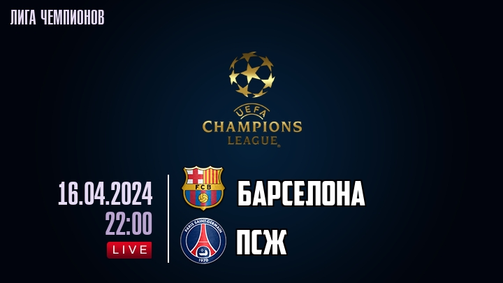 Лига чемпионов Прямая трансляция: Барселона — ПСЖ 16 апреля 2024