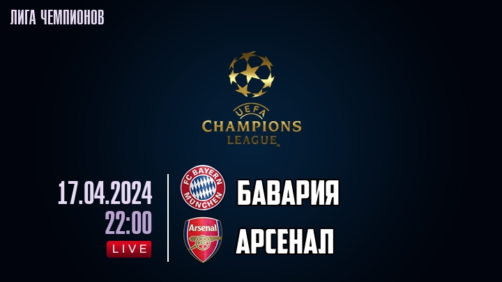 17 апреля 2024 года, состоялась онлайн трансляция футбольного матча между футбольным клубом Бавария и футбольным клубом Арсенал, проходящего в рамках Лиги Чемпионов.