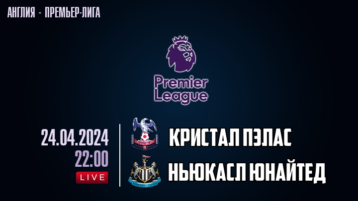 24 апреля 2024 года, состоялась онлайн трансляция футбольного матча между футбольным клубом Кристал Пэлас и футбольным клубом Ньюкасл Юнайтед, проходящего в рамках Премьер лиги Англии.