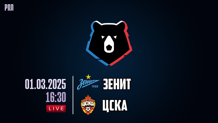 1 марта 2025 года, состоялась онлайн трансляция футбольного матча между футбольным клубом Зенит и футбольным клубом ЦСКА, проходящего в рамках чемпионата РПЛ.