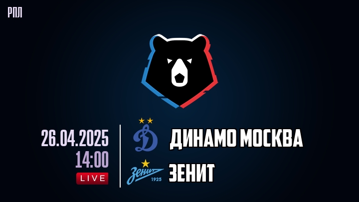26 апреля 2025 года, состоялась онлайн трансляция футбольного матча между футбольным клубом Динамо Москва и футбольным клубом Зенит, проходящего в рамках чемпионата РПЛ.
