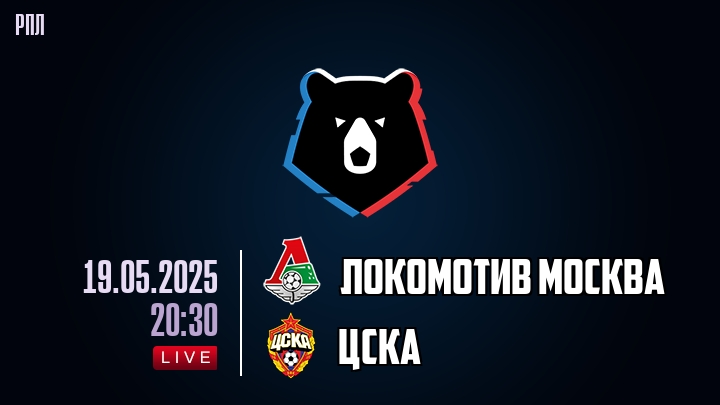 19 мая 2025 года, состоялась онлайн трансляция футбольного матча между футбольным клубом Локомотив Москва и футбольным клубом ЦСКА, проходящего в рамках чемпионата РПЛ.