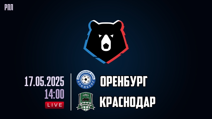 17 мая 2025 года, состоялась онлайн трансляция футбольного матча между футбольным клубом Оренбург и футбольным клубом Краснодар, проходящего в рамках чемпионата РПЛ.