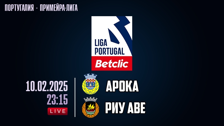 10 февраля 2025 года, состоялась онлайн трансляция футбольного матча между футбольным клубом Арока и футбольным клубом Риу Аве, проходящего в рамках Примейра-лиги Португалии.
