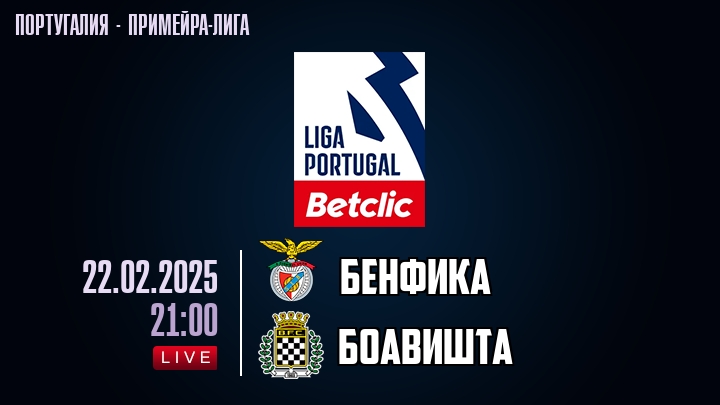 22 февраля 2025 года, состоялась онлайн трансляция футбольного матча между футбольным клубом Бенфика и футбольным клубом Боавишта, проходящего в рамках Примейра-лиги Португалии.