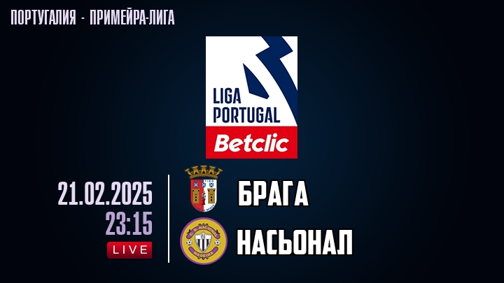 21 февраля 2025 года, состоялась онлайн трансляция футбольного матча между футбольным клубом Брага и футбольным клубом Насьонал, проходящего в рамках Примейра-лиги Португалии.