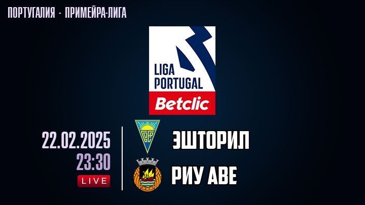 22 февраля 2025 года, состоялась онлайн трансляция футбольного матча между футбольным клубом Эшторил и футбольным клубом Риу Аве, проходящего в рамках Примейра-лиги Португалии.