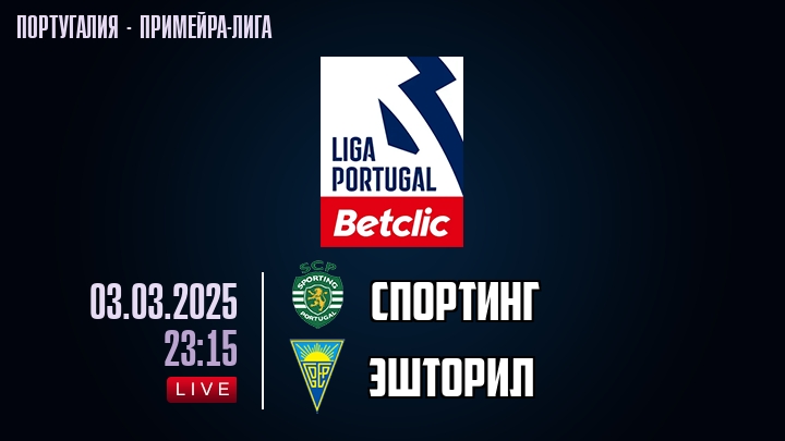 3 марта 2025 года, состоялась онлайн трансляция футбольного матча между футбольным клубом Спортинг и футбольным клубом Эшторил, проходящего в рамках Примейра-лиги Португалии.