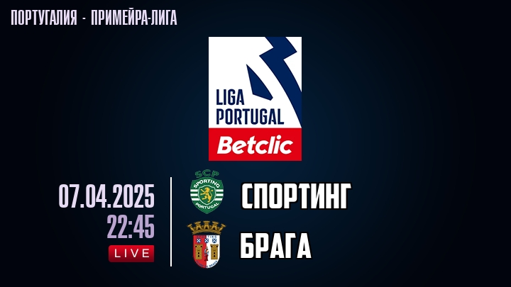 7 апреля 2025 года, состоялась онлайн трансляция футбольного матча между футбольным клубом Спортинг и футбольным клубом Брага, проходящего в рамках Примейра-лиги Португалии.