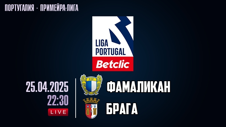 25 апреля 2025 года, состоялась онлайн трансляция футбольного матча между футбольным клубом Фамаликан и футбольным клубом Брага, проходящего в рамках Примейра-лиги Португалии.