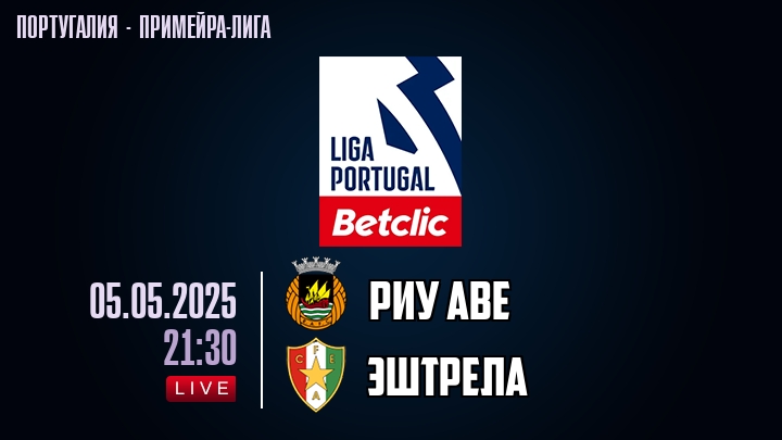 5 мая 2025 года, состоялась онлайн трансляция футбольного матча между футбольным клубом Риу Аве и футбольным клубом Эштрела, проходящего в рамках Примейра-лиги Португалии.