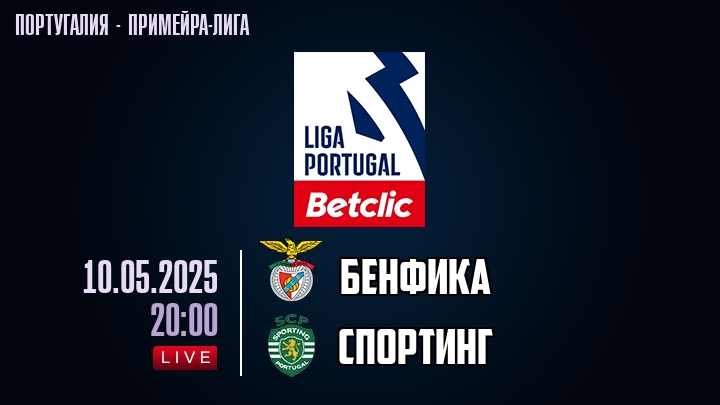 10 мая 2025 года, состоялась онлайн трансляция футбольного матча между футбольным клубом Бенфика и футбольным клубом Спортинг, проходящего в рамках Примейра-лиги Португалии.