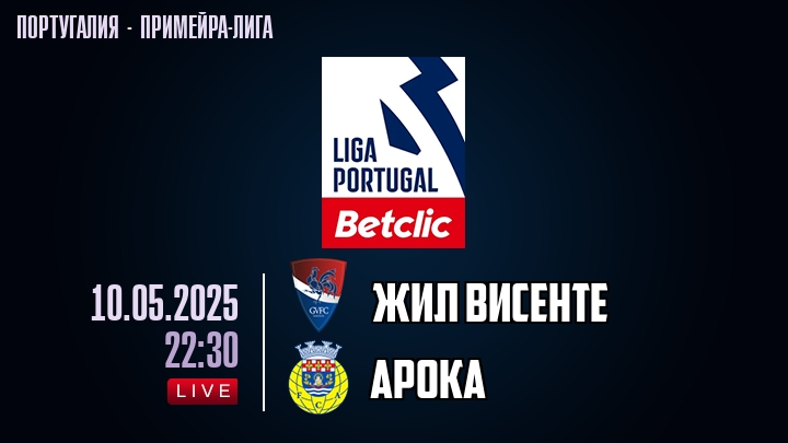 10 мая 2025 года, состоялась онлайн трансляция футбольного матча между футбольным клубом Жил Висенте и футбольным клубом Арока, проходящего в рамках Примейра-лиги Португалии.