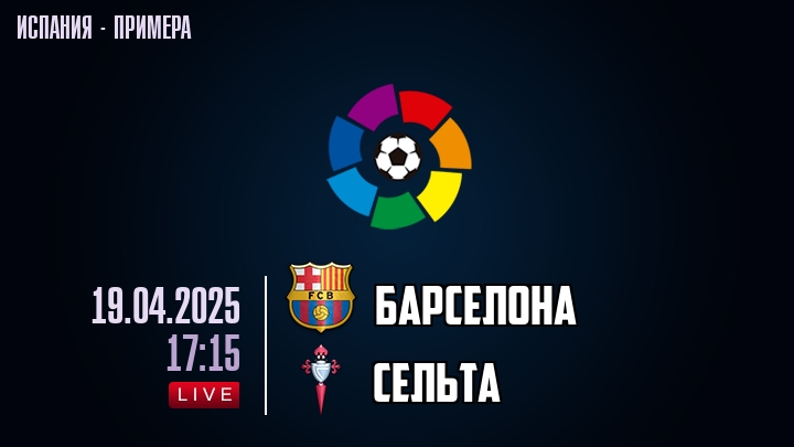 19 апреля 2025 года, состоялась онлайн трансляция футбольного матча между футбольным клубом Барселона и футбольным клубом Сельта, проходящего в рамках чемпионата Испании.