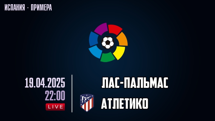 19 апреля 2025 года, состоялась онлайн трансляция футбольного матча между футбольным клубом Лас-Пальмас и футбольным клубом Атлетико, проходящего в рамках чемпионата Испании.