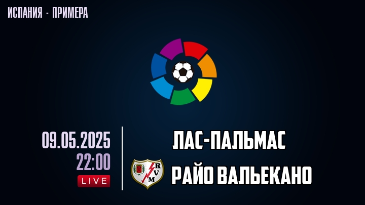 9 мая 2025 года, состоялась онлайн трансляция футбольного матча между футбольным клубом Лас-Пальмас и футбольным клубом Райо Вальекано, проходящего в рамках чемпионата Испании.