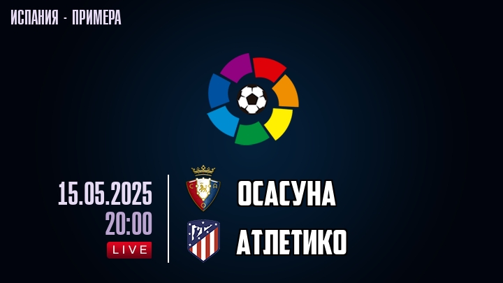 15 мая 2025 года, состоялась онлайн трансляция футбольного матча между футбольным клубом Осасуна и футбольным клубом Атлетико, проходящего в рамках чемпионата Испании.