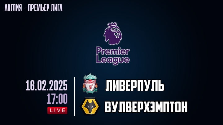 16 февраля 2025 года, состоялась онлайн трансляция футбольного матча между футбольным клубом Ливерпуль и футбольным клубом Вулверхэмптон, проходящего в рамках Премьер лиги Англии.