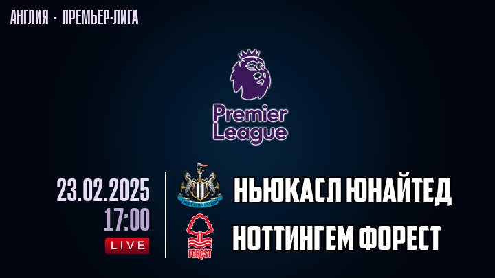 23 февраля 2025 года, состоялась онлайн трансляция футбольного матча между футбольным клубом Ньюкасл Юнайтед и футбольным клубом Ноттингем Форест, проходящего в рамках Премьер лиги Англии.