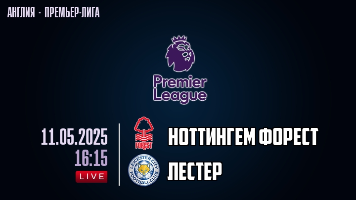 11 мая 2025 года, состоялась онлайн трансляция футбольного матча между футбольным клубом Ноттингем Форест и футбольным клубом Лестер, проходящего в рамках Премьер лиги Англии.