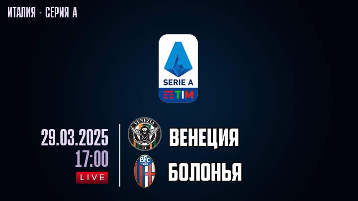 29 марта 2025 года, состоялась онлайн трансляция футбольного матча между футбольным клубом Венеция и футбольным клубом Болонья, проходящего в рамках Серии А чемпионата Италии.