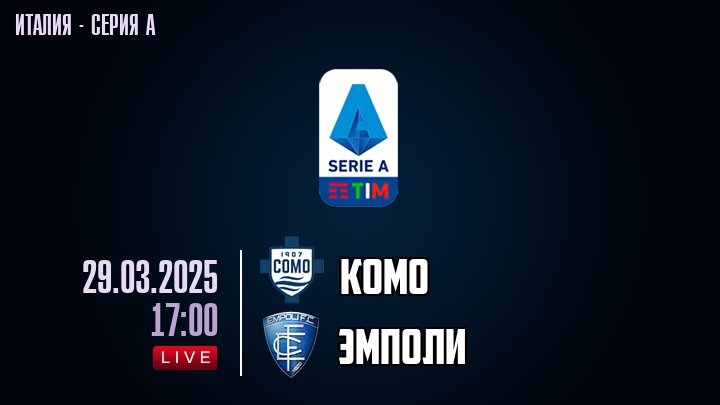 29 марта 2025 года, состоялась онлайн трансляция футбольного матча между футбольным клубом Комо и футбольным клубом Эмполи, проходящего в рамках Серии А чемпионата Италии.