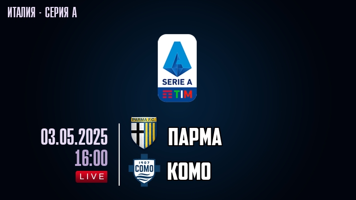 3 мая 2025 года, состоялась онлайн трансляция футбольного матча между футбольным клубом Парма и футбольным клубом Комо, проходящего в рамках Серии А чемпионата Италии.