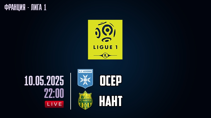 10 мая 2025 года, состоялась онлайн трансляция футбольного матча между футбольным клубом Осер и футбольным клубом Нант, проходящего в рамках Лиги 1 чемпионата Франция.