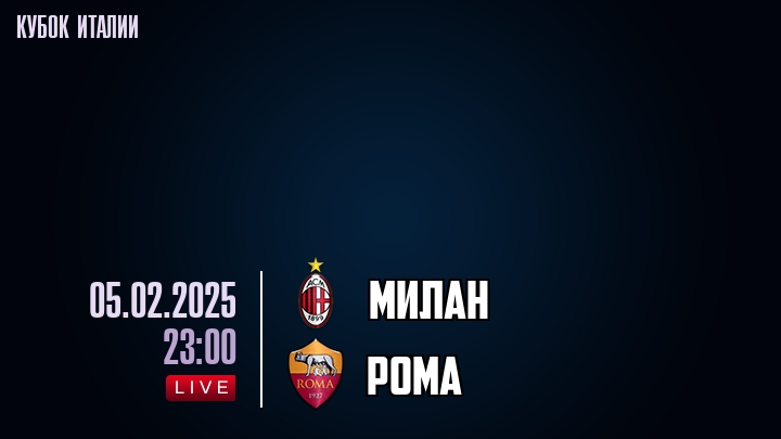 5 февраля 2025 года, состоялась онлайн трансляция футбольного матча между футбольным клубом Милан и футбольным клубом Рома, проходящего в рамках Кубка Италии.