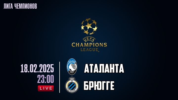 18 февраля 2025 года, состоялась онлайн трансляция футбольного матча между футбольным клубом Аталанта и футбольным клубом Брюгге, проходящего в рамках Лиги Чемпионов.