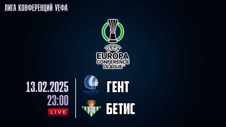 13 февраля 2025 года, состоялась онлайн трансляция футбольного матча между футбольным клубом Гент и футбольным клубом Бетис, проходящего в рамках Лиги конференций УЕФА.