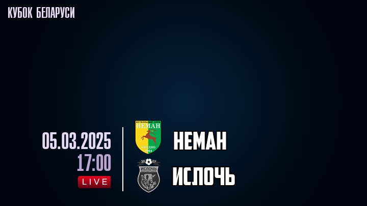 5 марта 2025 года, состоялась онлайн трансляция футбольного матча между футбольным клубом Неман и футбольным клубом Ислочь, проходящего в рамках Кубка Беларуси.
