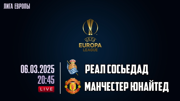6 марта 2025 года, состоялась онлайн трансляция футбольного матча между футбольным клубом Реал Сосьедад и футбольным клубом Манчестер Юнайтед, проходящего в рамках Лиги Европы.
