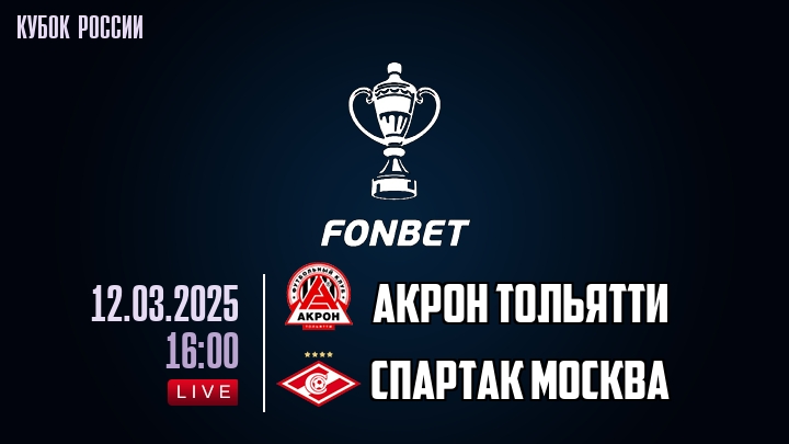 12 марта 2025 года, состоялась онлайн трансляция футбольного матча между футбольным клубом Акрон Тольятти и футбольным клубом Спартак Москва, проходящего в рамках Кубка России.