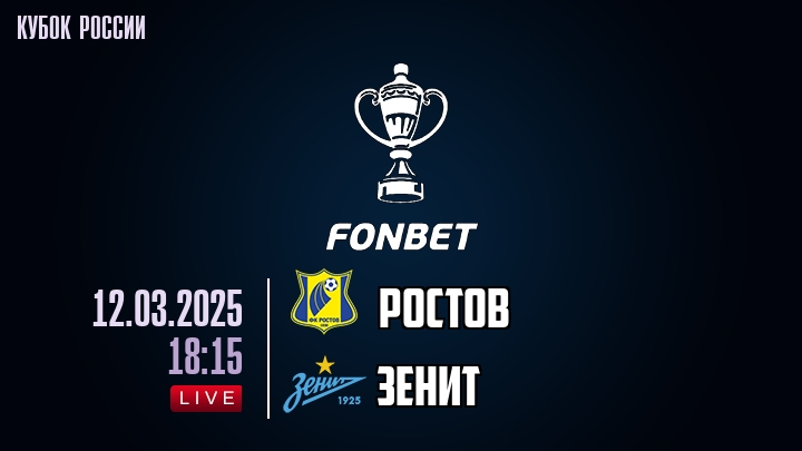 12 марта 2025 года, состоялась онлайн трансляция футбольного матча между футбольным клубом Ростов и футбольным клубом Зенит, проходящего в рамках Кубка России.