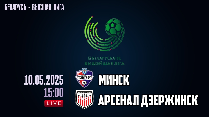 Беларусь - высшая лига Прямая трансляция: Минск — Арсенал Дзержинск 10 мая 2025