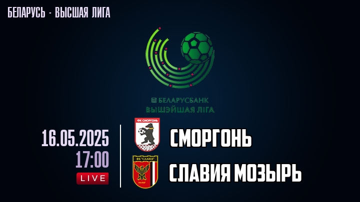 16 мая 2025 года, состоялась онлайн трансляция футбольного матча между футбольным клубом Сморгонь и футбольным клубом Славия Мозырь, проходящего в рамках Высшей лиги Беларуси.