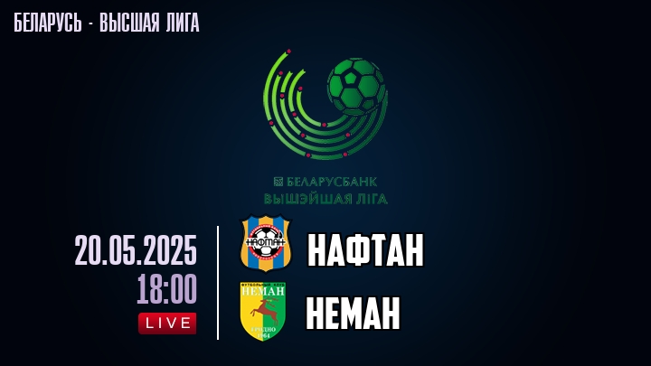 20 мая 2025 года, состоялась онлайн трансляция футбольного матча между футбольным клубом Нафтан и футбольным клубом Неман, проходящего в рамках Высшей лиги Беларуси.