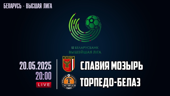 20 мая 2025 года, состоялась онлайн трансляция футбольного матча между футбольным клубом Славия Мозырь и футбольным клубом Торпедо-БелАЗ, проходящего в рамках Высшей лиги Беларуси.